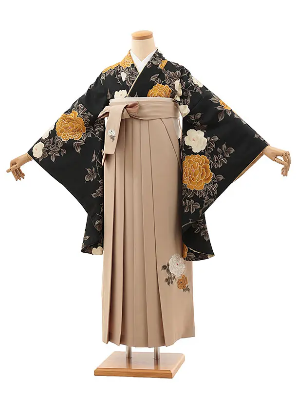 小学生卒業式袴(女の子) Z425 そしてゆめ 黒枝花×モカベージュ