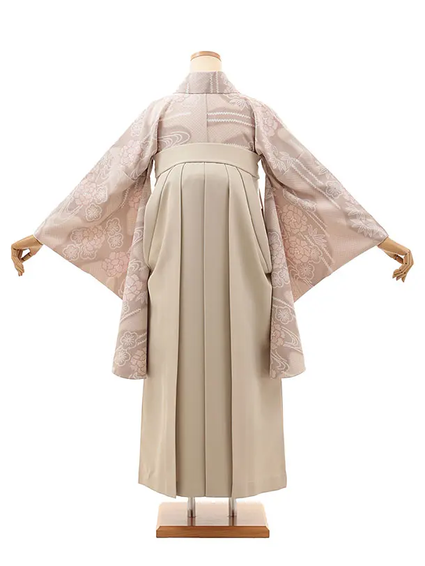 小学生卒業式袴(女の子) Z431 Heather 薄ピンク流水牡丹×ベージュ