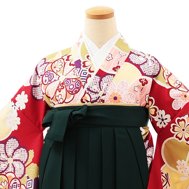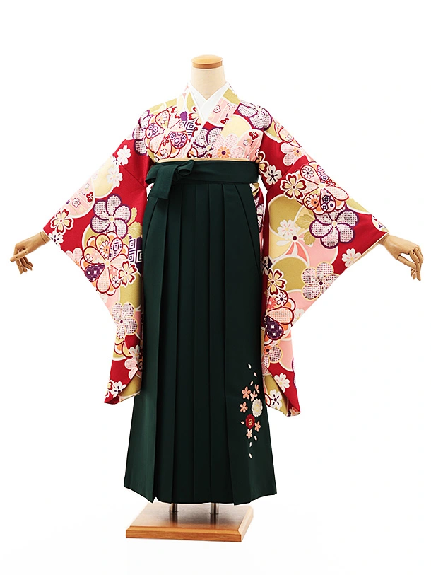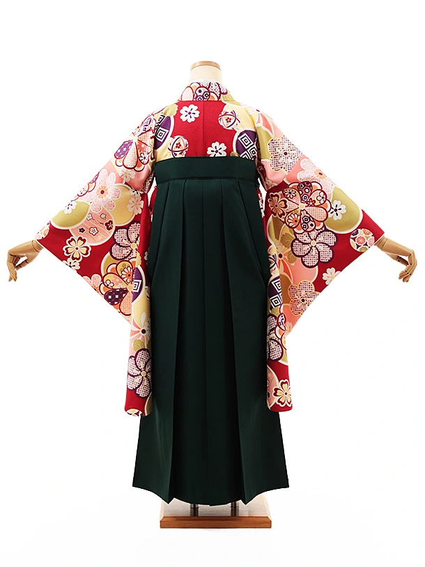 小学生卒業式略式袴(女の子) Z457 赤地ねじり梅×グリーン桜