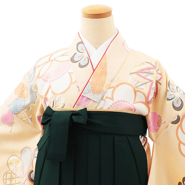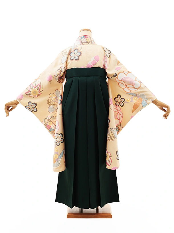 小学生卒業式略式袴(女の子) Z459 クリーム地 鞠に松竹梅×グリーン桜