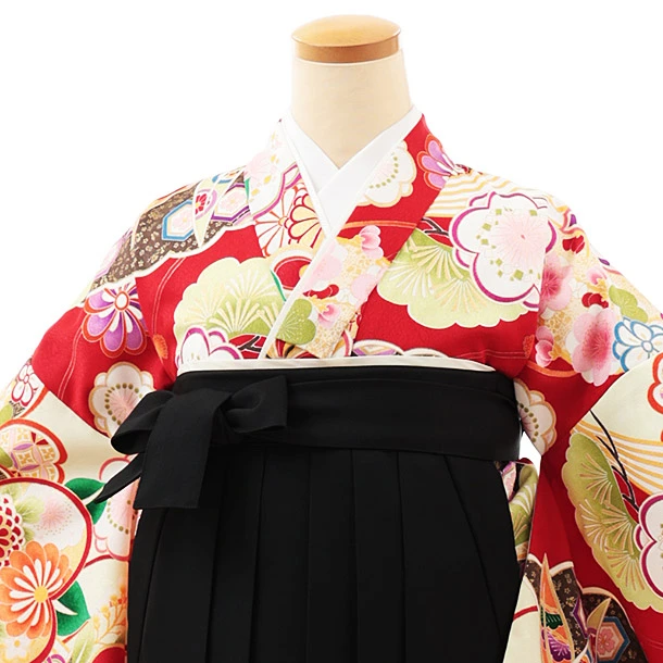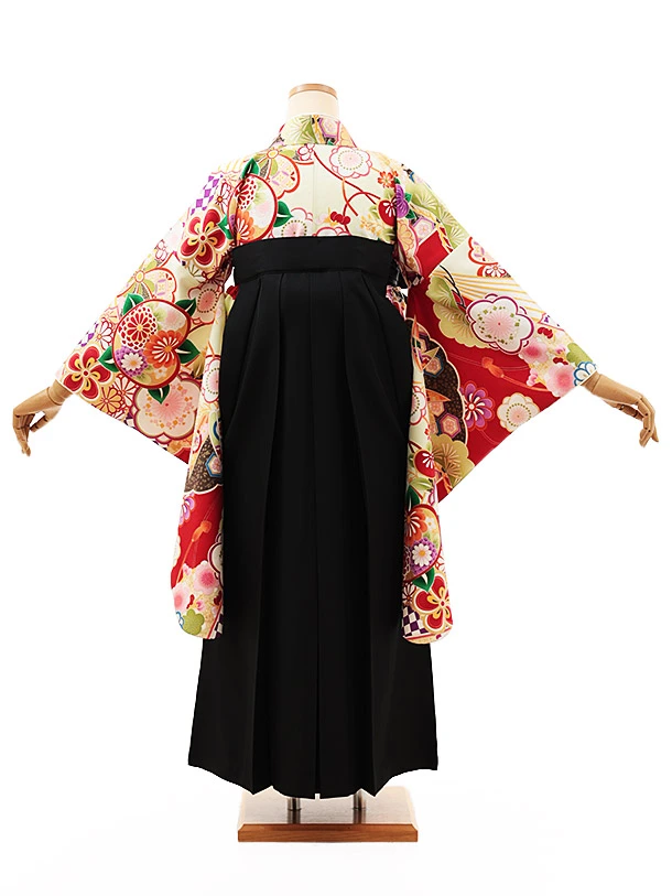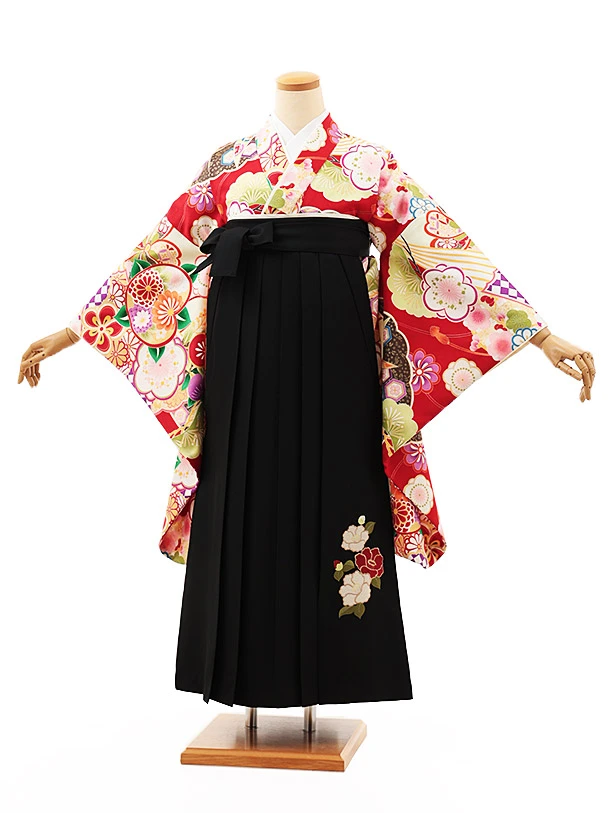 小学生卒業式略式袴(女の子) Z468 赤地古典×黒椿
