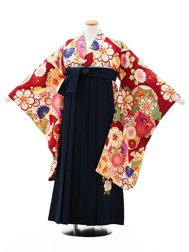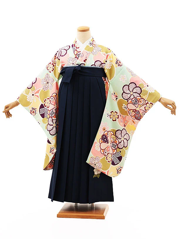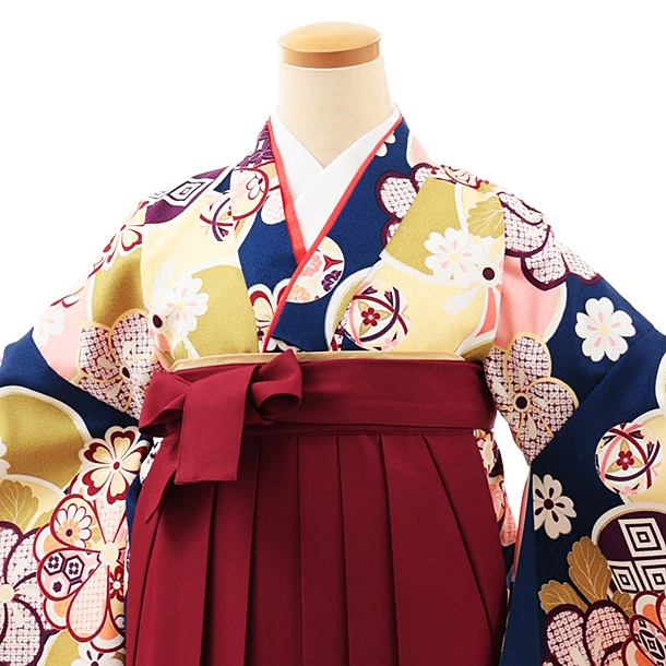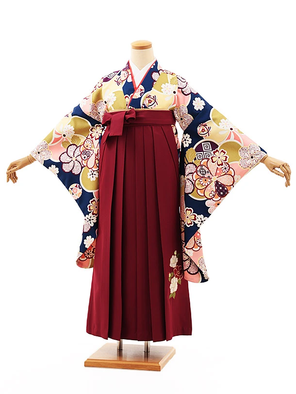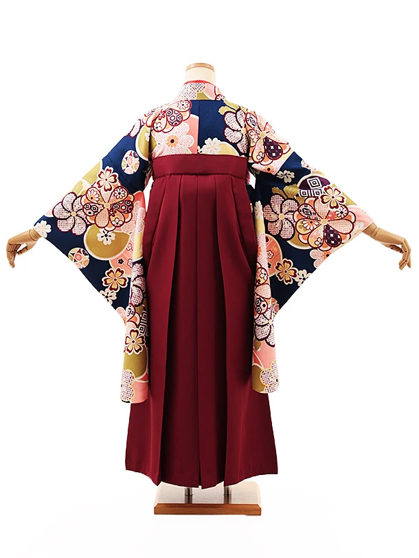 小学生卒業式略式袴(女の子) Z469 紺地ねじり梅×エンジ椿