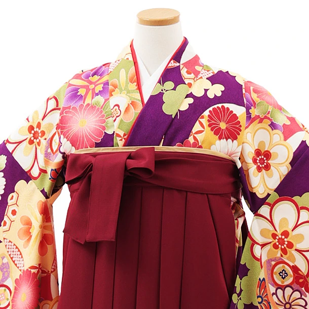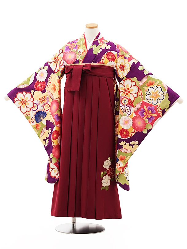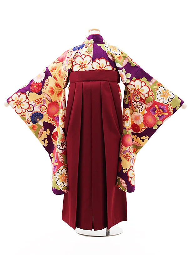 小学生卒業式略式袴(女の子) Z502 紫 古典花づくし×エンジ椿