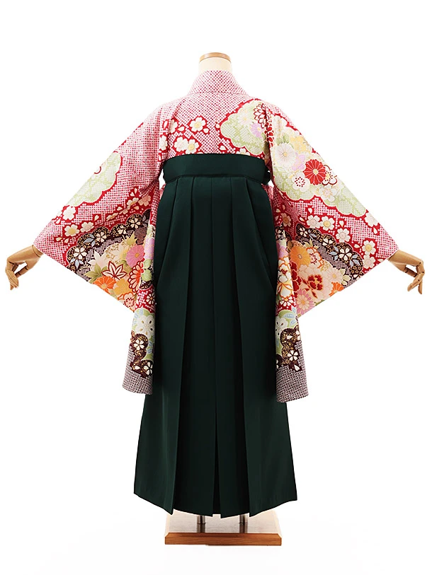 小学生卒業式略式袴(女の子) Z510 赤地疋田柄 牡丹花×グリーン桜