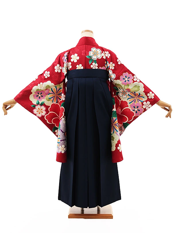 小学生卒業式略式袴(女の子) Z520 赤地 桜椿×紺椿