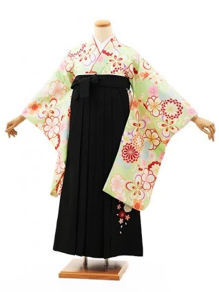 小学生卒業式略式袴(女の子) Z533 ミント桜菊雪輪×クリーム椿