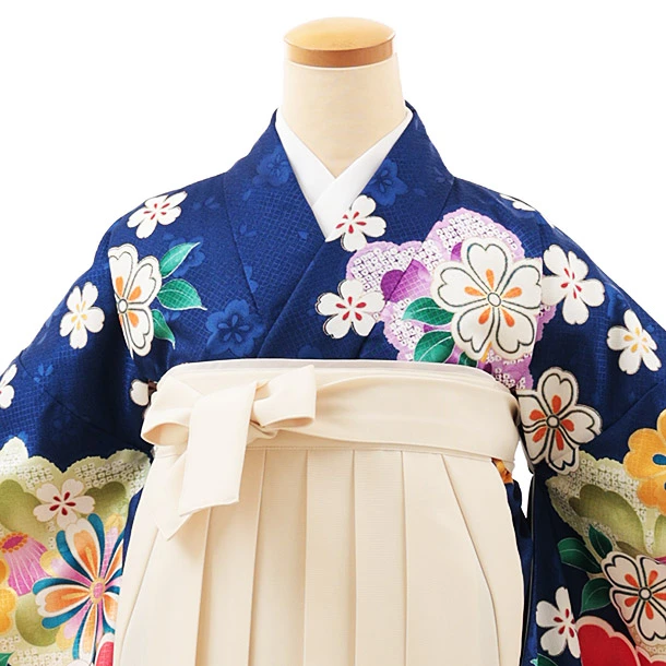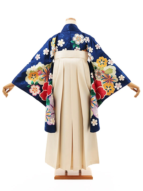 小学生卒業式略式袴(女の子) Z540 ブルー桜椿×クリーム桜