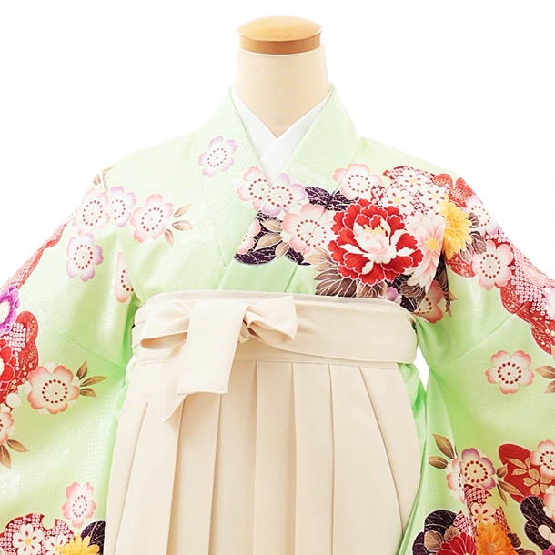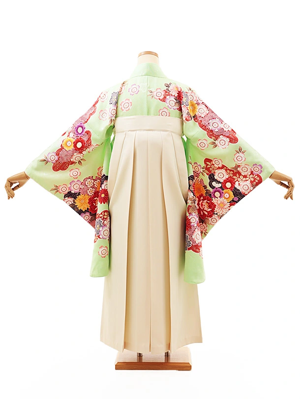 小学生卒業式略式袴(女の子) Z543 ビビッドグリーン花づくし×クリーム桜