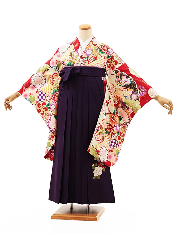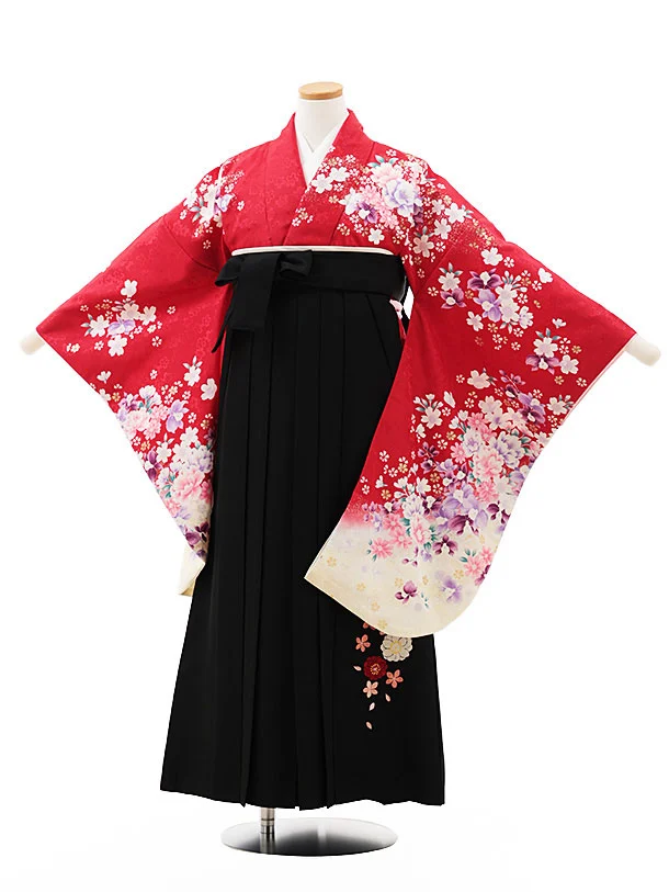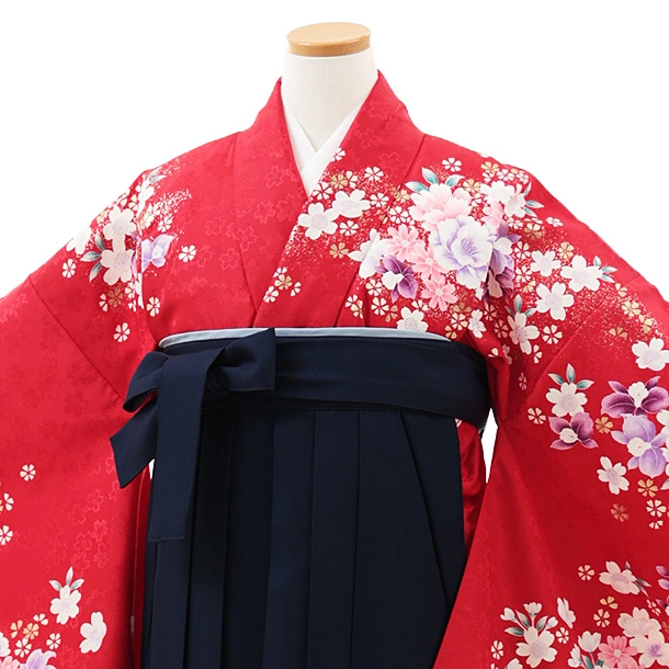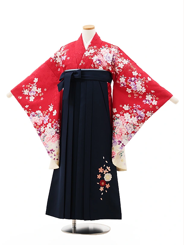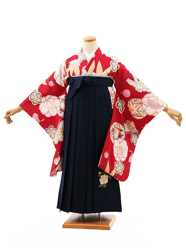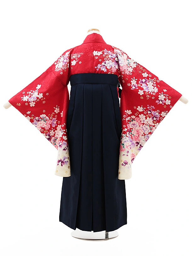 小学生卒業式略式袴(女の子) Z546 赤地花づくし×紺桜