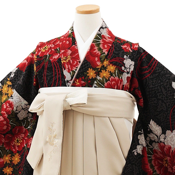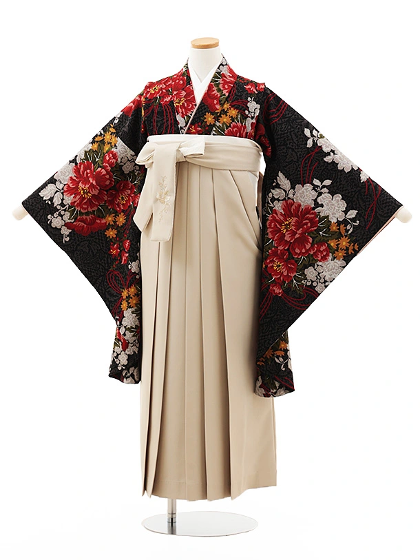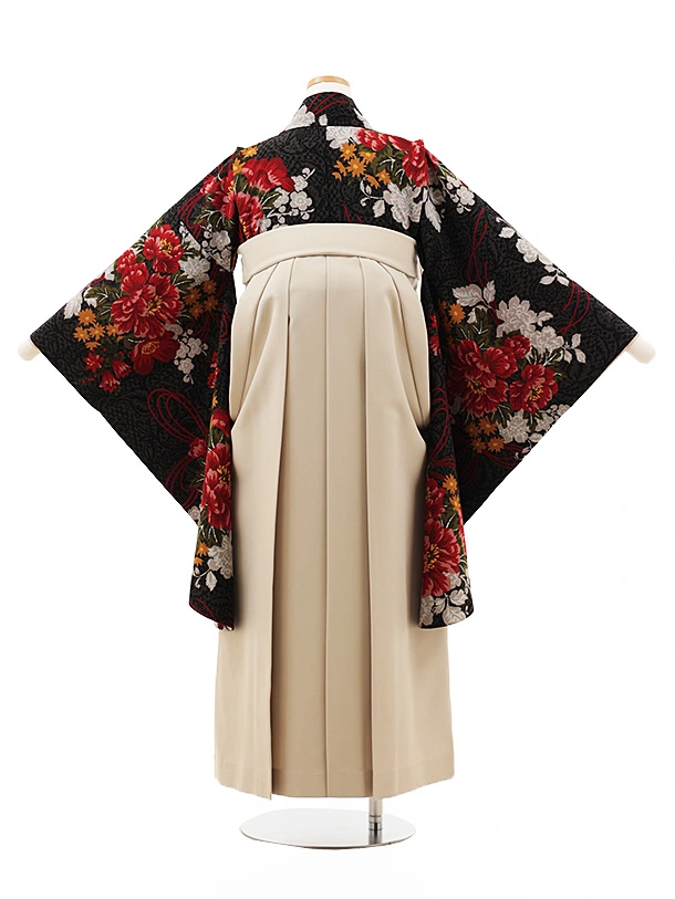 小学生卒業式袴(女の子) Z551 和風館 黒コブラン薬玉×ベージュ
