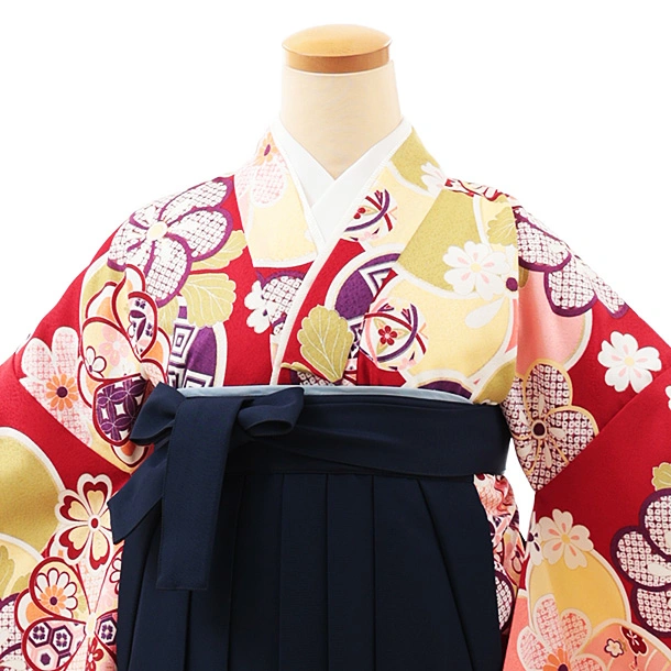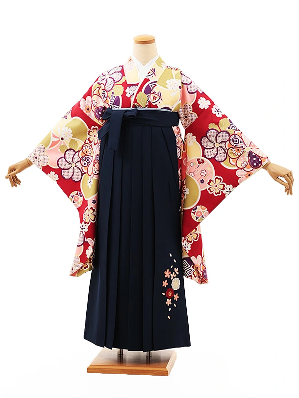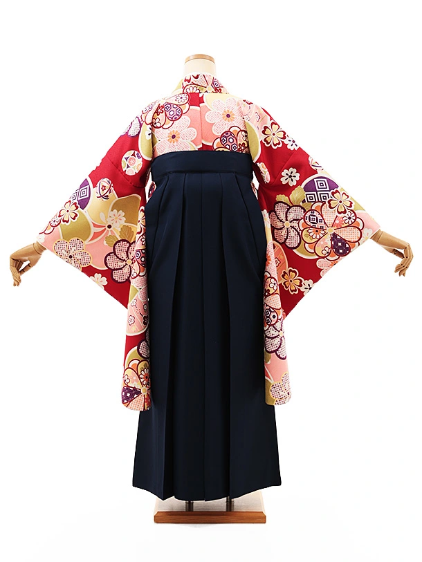小学生卒業式略式袴(女の子) Z567 赤地ねじり梅×紺桜