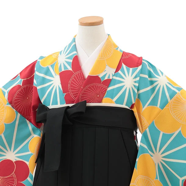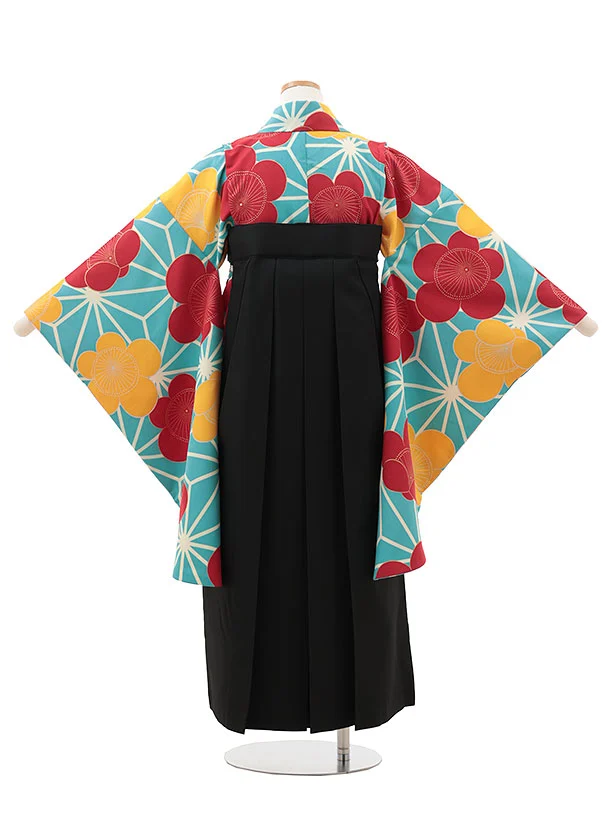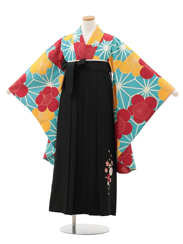 小学生卒業式略式袴(女の子) Z610 水色 麻の葉に梅×黒桜