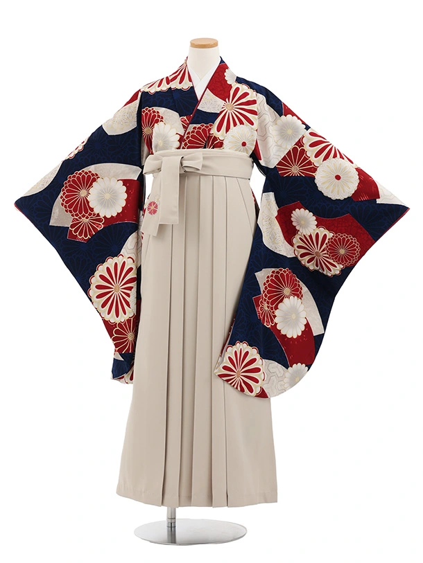 小学生卒業式略式袴(女の子) Z618 ベージュ鞠花×紺椿