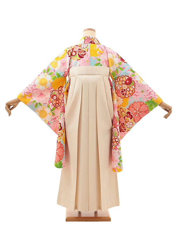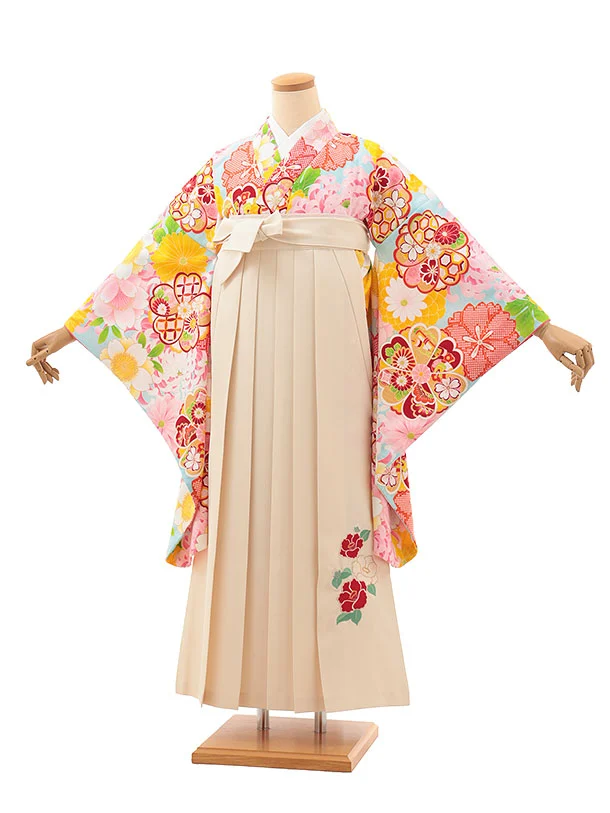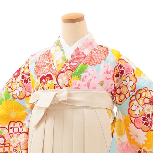 小学生卒業式略式袴(女の子) Z619 水色花づくし×クリーム椿