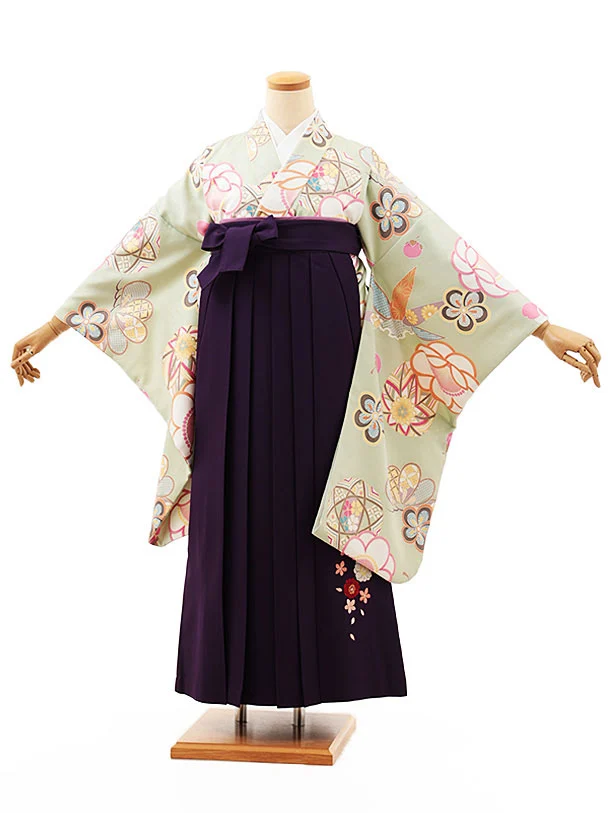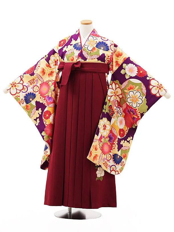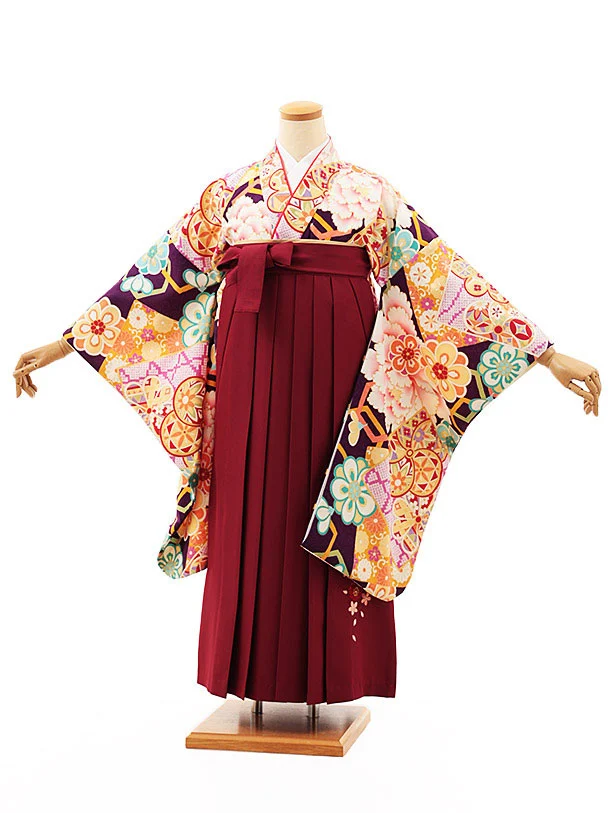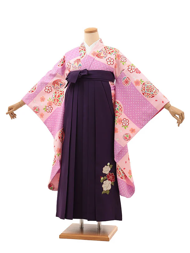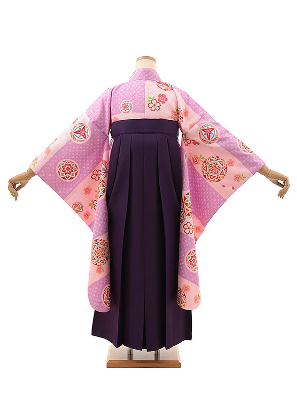 小学生卒業式略式袴(女の子) Z625 ピンクパープル鞠×紫椿