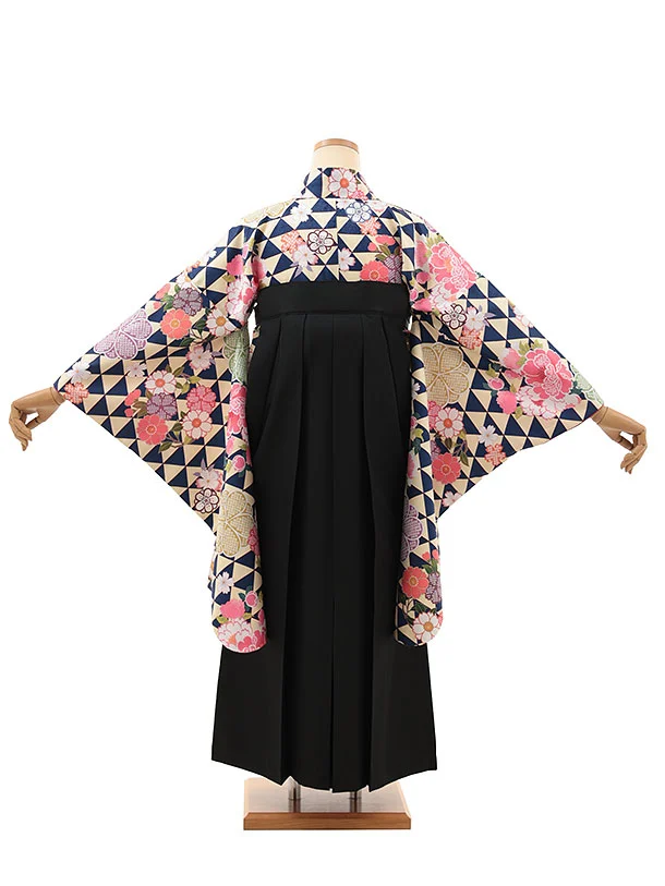 小学生卒業式略式袴(女の子) Z627 紺クリームうろこ花×黒桜
