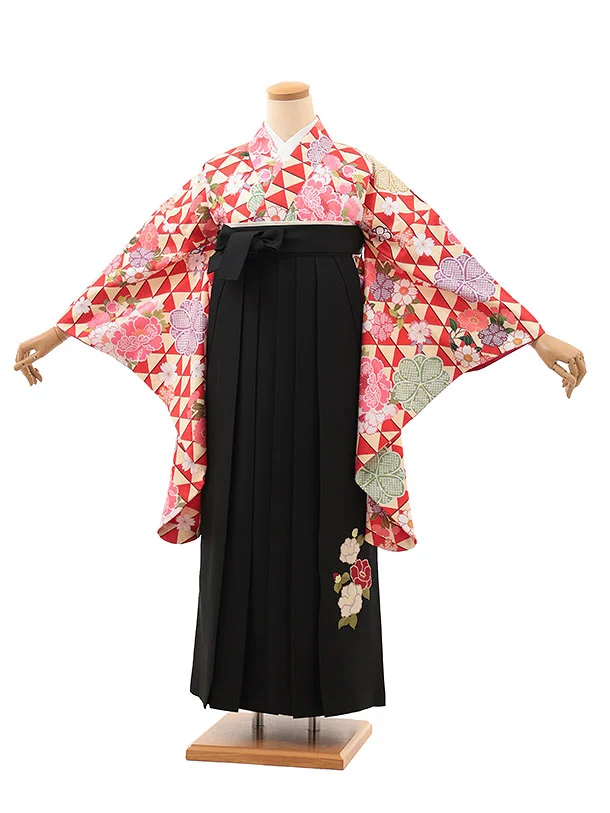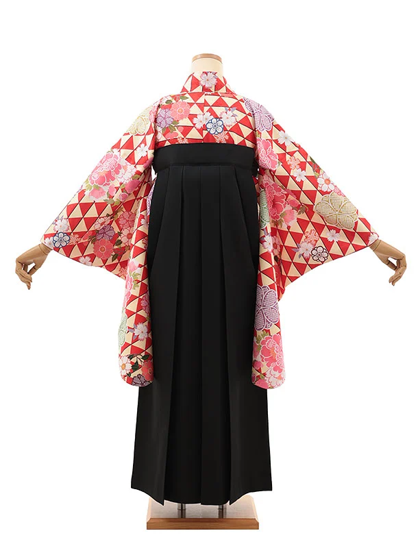 小学生卒業式略式袴(女の子) Z633 クリーム赤うろこ花×黒椿