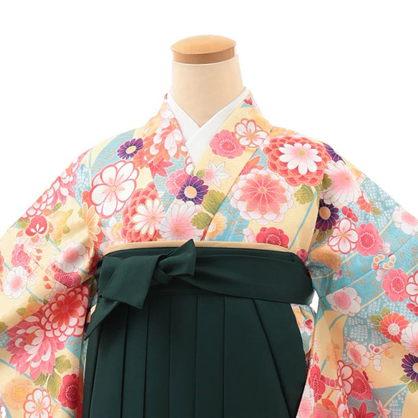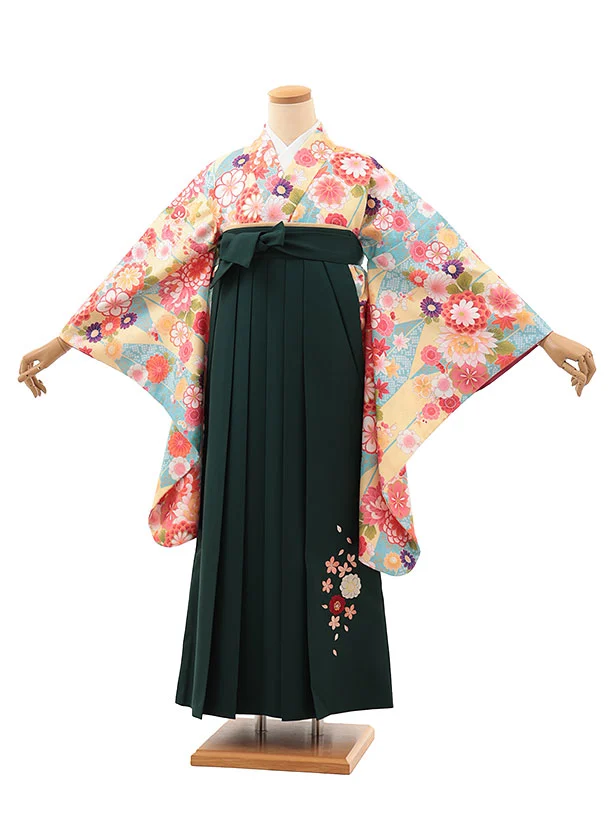 小学生卒業式略式袴(女の子) Z634 水色イエロー花×緑桜