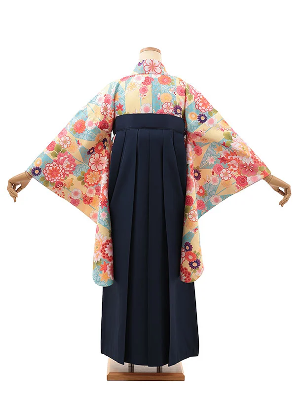 小学生卒業式略式袴(女の子) Z635 水色イエロー花×紺桜