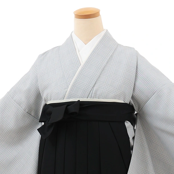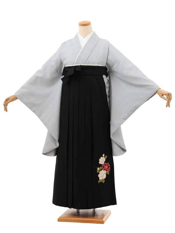 小学生卒業式かんたん袴(女の子) Z697 グレーグレンチェック×黒椿