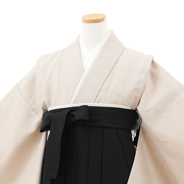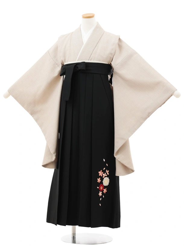 小学生卒業式略式袴(女の子) Z707 ベージュグレンチェック×黒桜