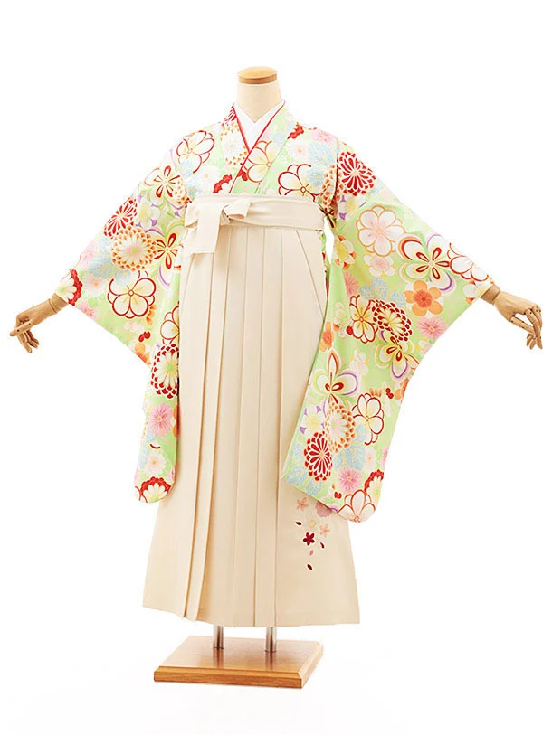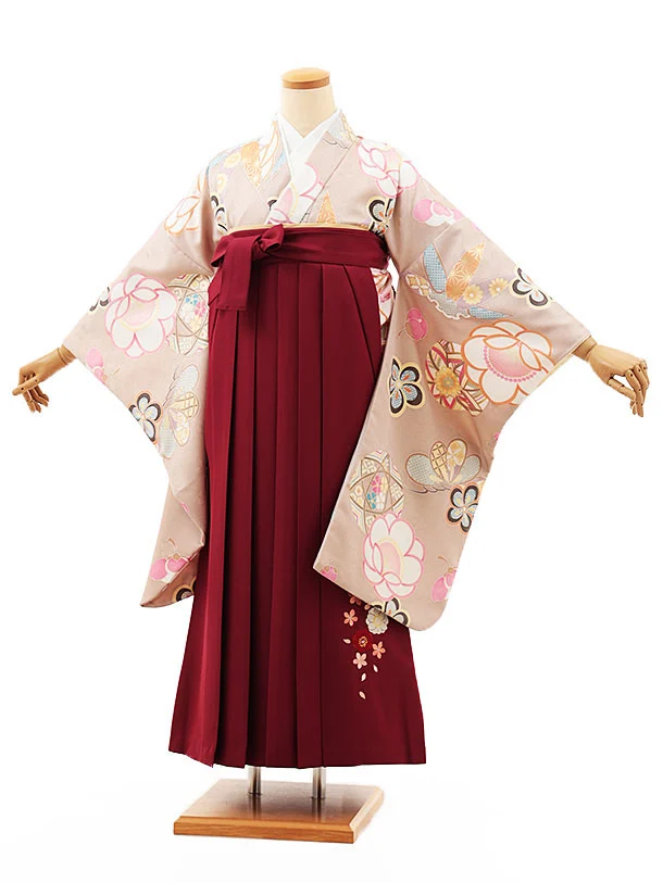小学生卒業式略式袴(女の子) Z708 ベージュグレンチェック×紺桜