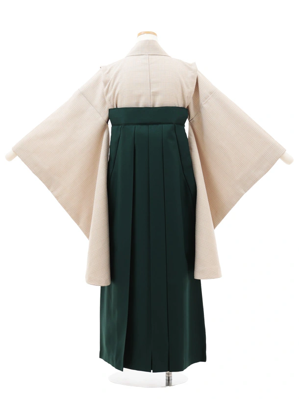 小学生卒業式略式袴(女の子) Z710 ベージュグレンチェック×グリーン桜