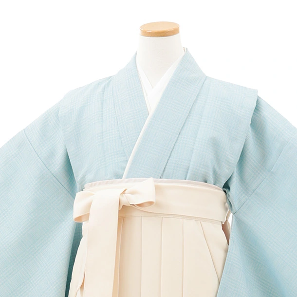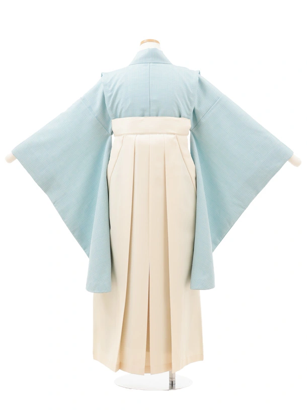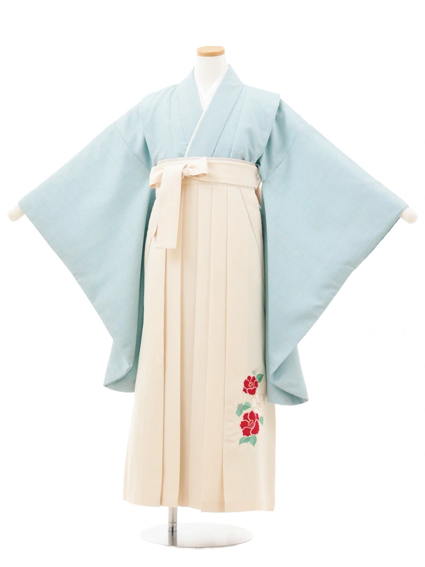 小学生卒業式略式袴(女の子) Z718 水色グレンチェック×クリーム椿