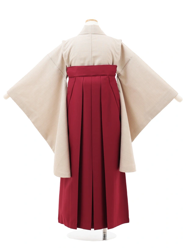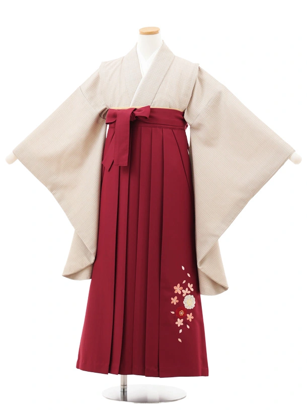 小学生卒業式略式袴(女の子) Z720 ベージュグレンチェック×エンジ桜