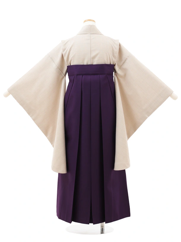 小学生卒業式略式袴(女の子) Z722 ベージュグレンチェック×紫桜