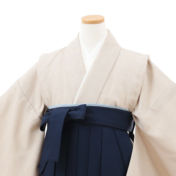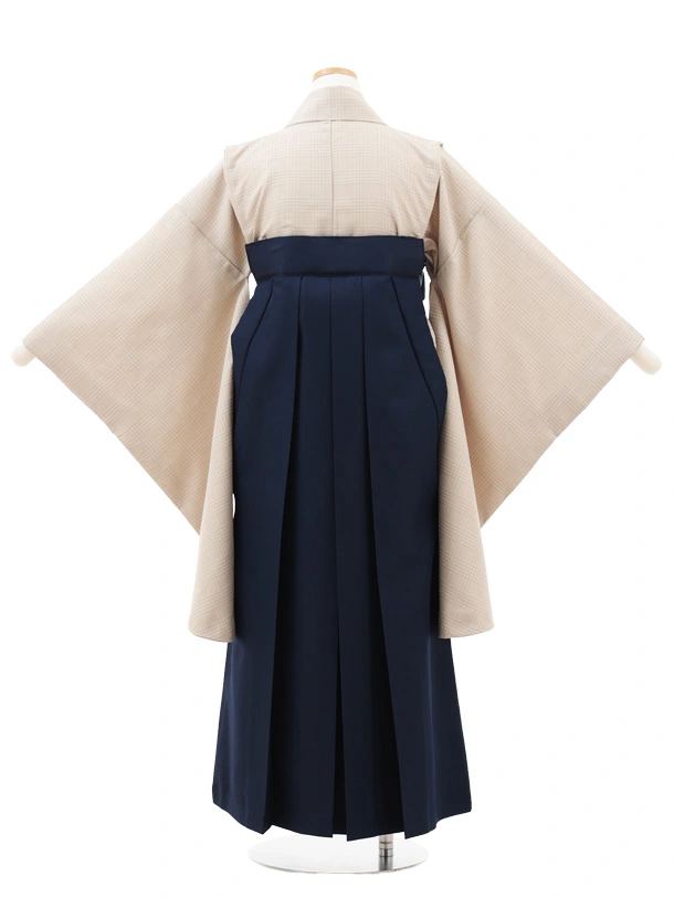 小学生卒業式略式袴(女の子) Z724 ベージュグレンチェック×紺椿
