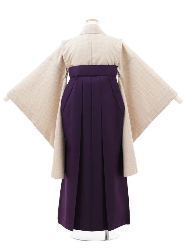 小学生卒業式略式袴(女の子) Z726 ベージュグレンチェック×紫椿