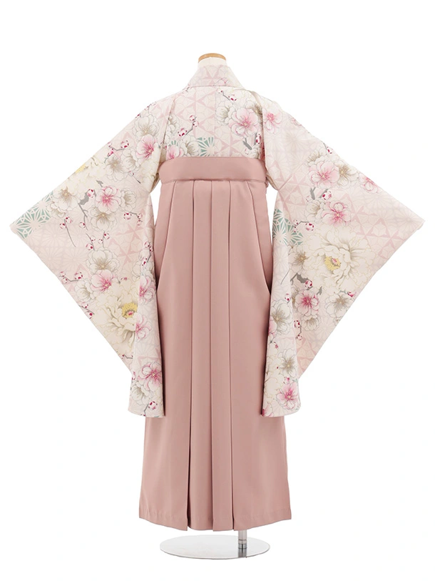 小学生卒業式かんたん袴 Z806 ジャパンスタイル淡パープル花×モーヴピンク