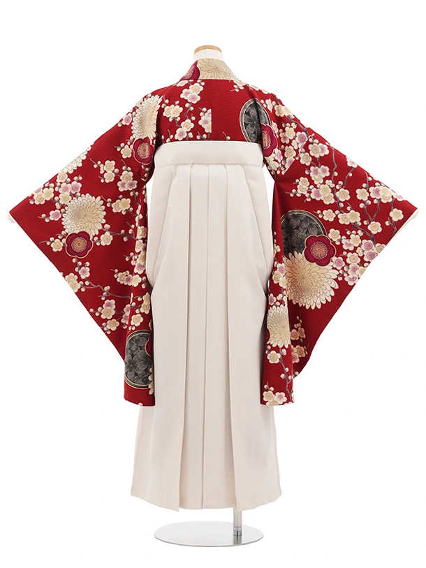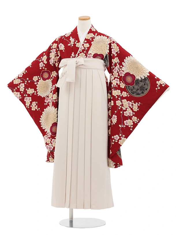 小学生卒業式かんたん袴(女の子) Z807 九重赤地梅菊×アイボリー