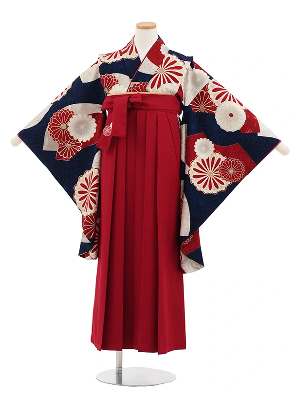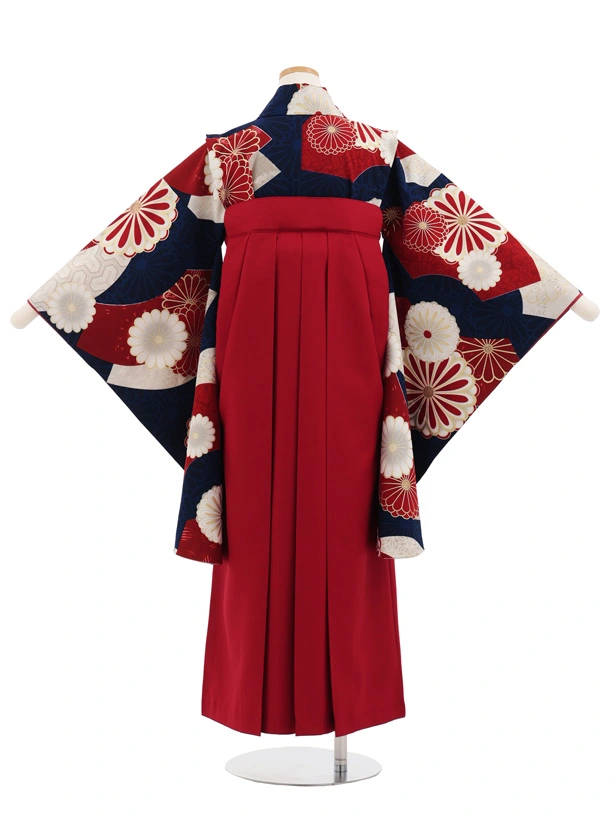 小学生卒業式かんたん袴(女の子) Z815 ジャパンスタイル紺赤菊×赤