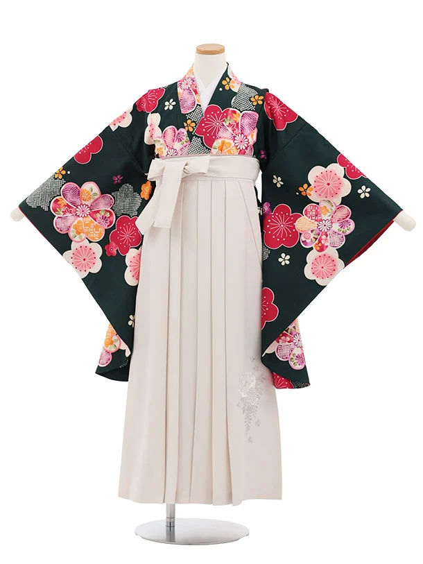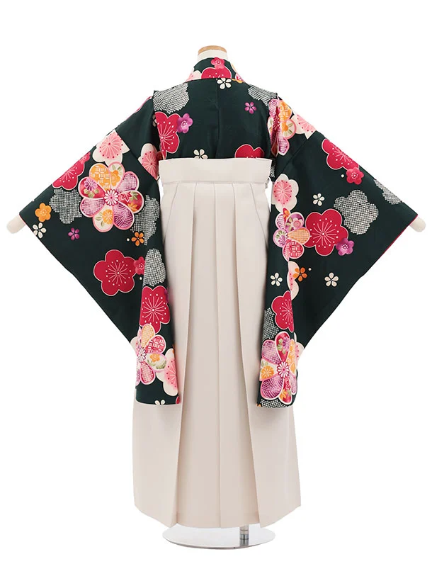 小学生卒業式かんたん袴(女の子) Z821 深緑地梅菊×アイボリー