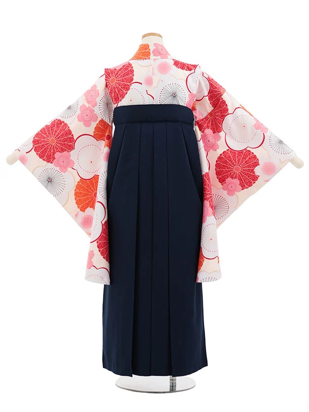 小学生卒業式かんたん袴(女の子) Z828 ピンククリーム地梅菊桜×紺