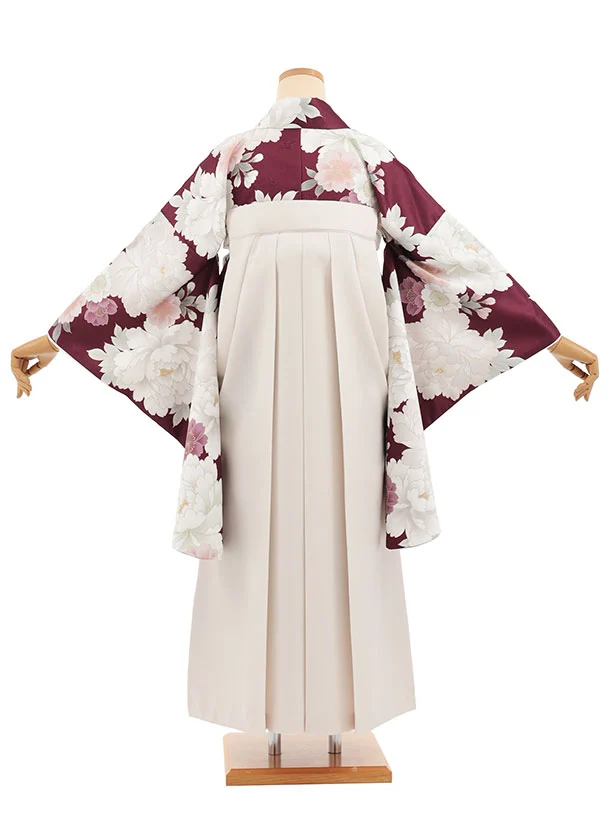 小学生卒業式かんたん袴(女の子) Z831 ボルドー牡丹×アイボリー