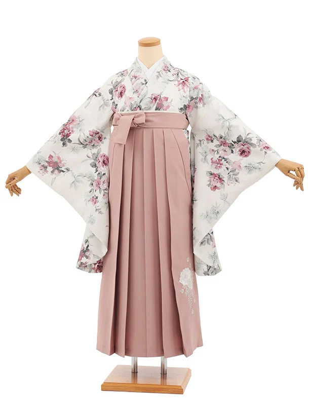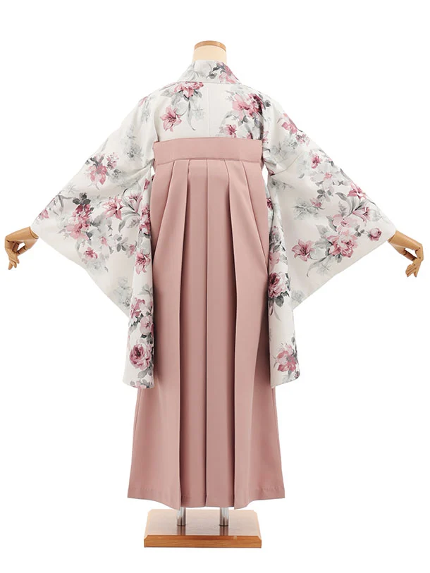 小学生卒業式かんたん袴(女の子) Z838 オフホワイトパステル花×モーヴピンク