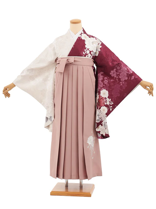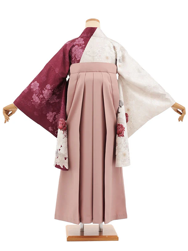 小学生かんたん袴(女の子) Z840 ボルドー薄ベージュ染め分け花×モーヴピンク