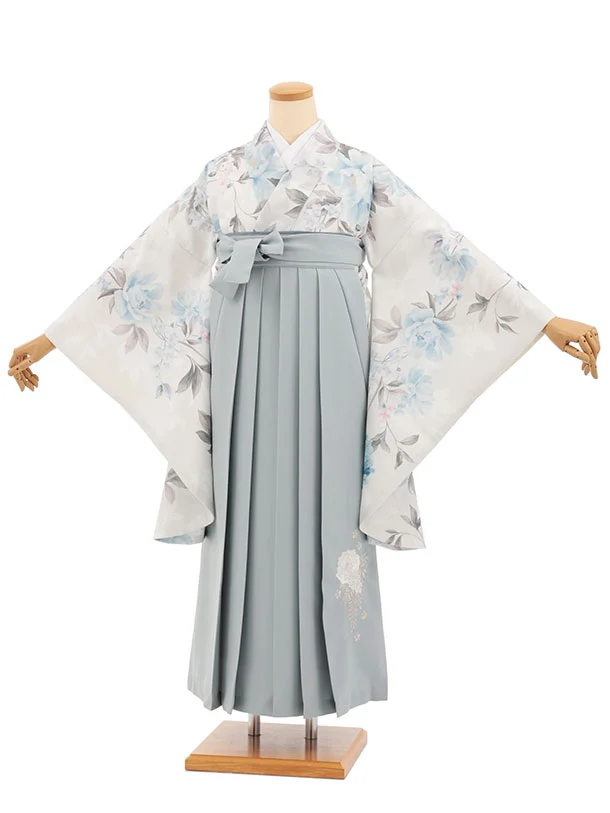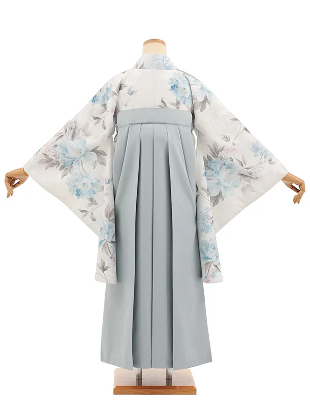 小学生卒業式かんたん袴(女の子) Z843 薄ベージュパステル牡丹×薄グレー