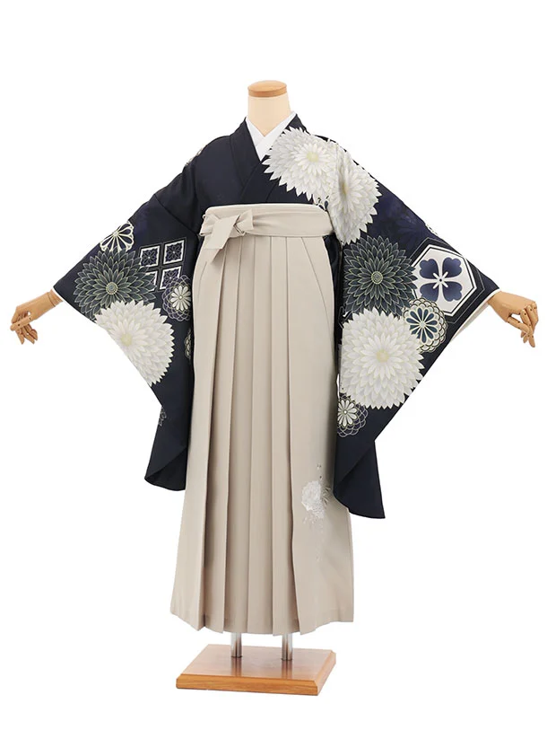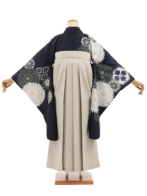 小学生卒業式かんたん袴(女の子) Z849 紺古典菊×ベージュ