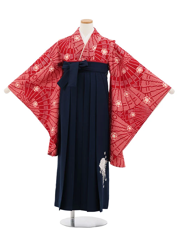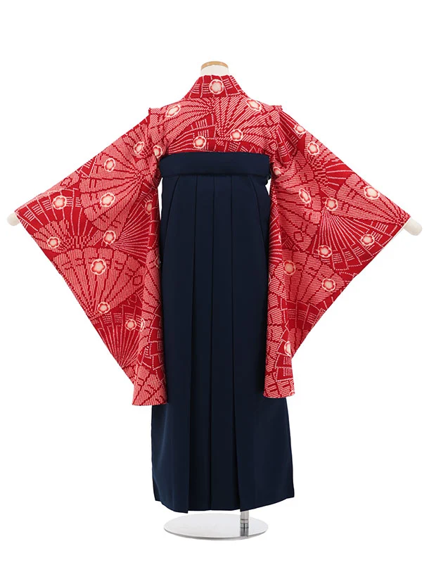 小学生卒業式かんたん袴(女の子) Z868 赤疋田柄梅×紺