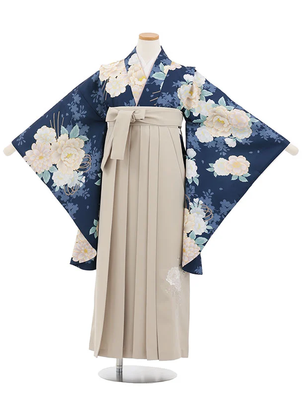 小学生卒業式かんたん袴(女の子) Z870 ネイビーブーケ×ベージュ