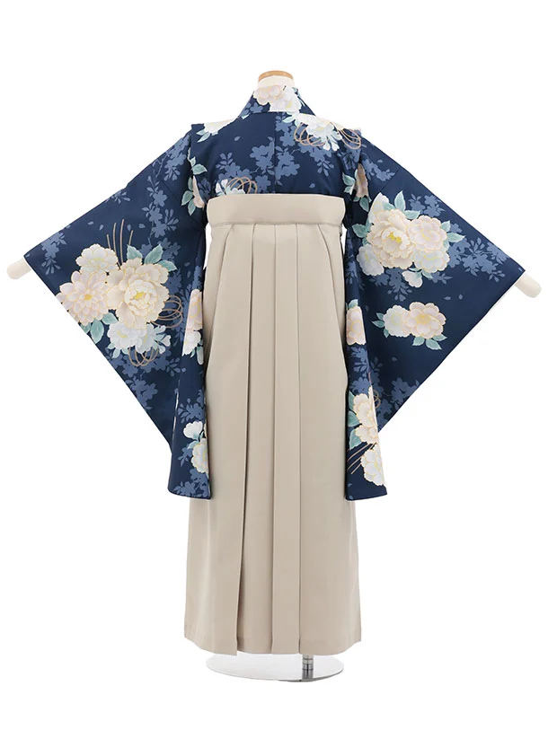 小学生卒業式かんたん袴(女の子) Z871 ネイビーブーケ×ベージュ