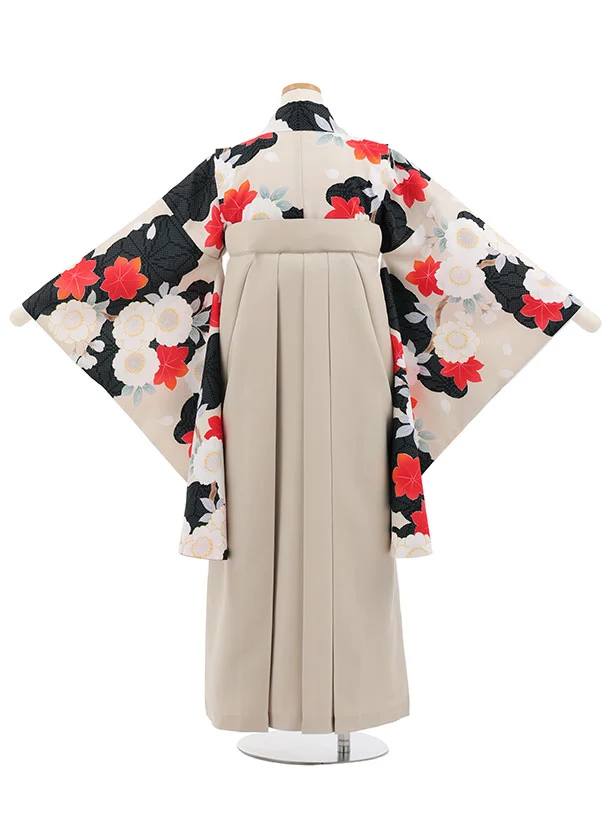 小学生卒業式かんたん袴(女の子) Z872 ベージュもみじ桜×ベージュ