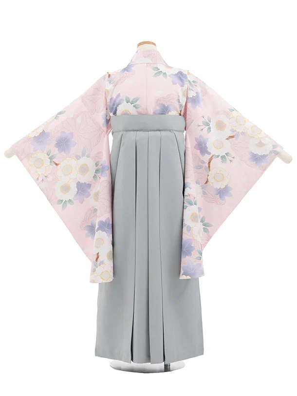 小学生卒業式かんたん袴(女の子) Z873 ピンクもみじ桜×薄グレー