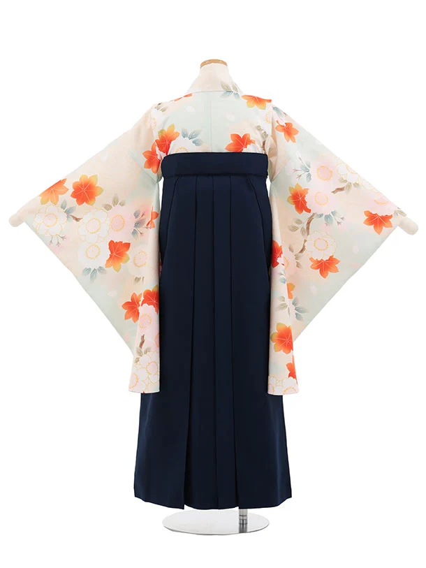 小学生卒業式かんたん袴(女の子) Z874 ペールグリーンもみじ桜×紺