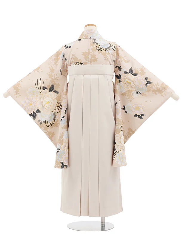 小学生卒業式かんたん袴(女の子) Z881 ベージュブーケ×アイボリー