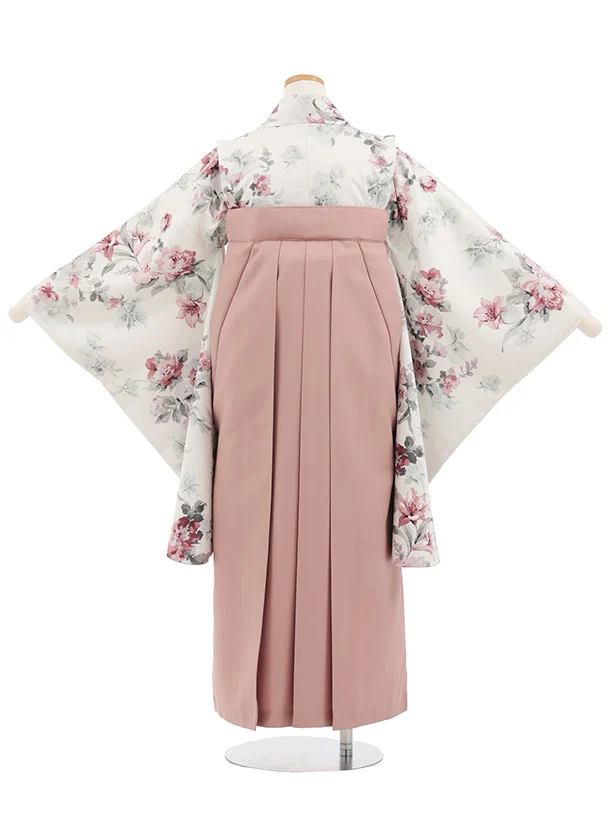 小学生卒業式かんたん袴(女の子) Z882 オフホワイトパステル花×モーヴピンク